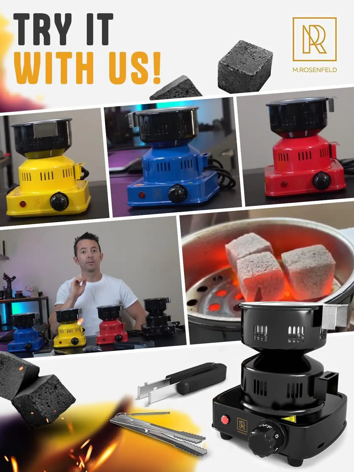 FAST & UNIVERSAL - with 450-watt this charcoal briquettes electric grill burner makes coals for anything (coconut charcoal, bamboo, wood) to burn red after 10min & ready to use. For any kind of coals: cubes, flats etc).